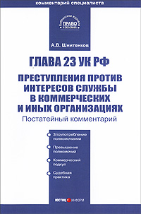 | Полное название книги | А. В. Шнитенков Комментарий к главе 23 Уголовного кодекса Российской Федерации "Преступления против интересов службы в коммерческих и иных организациях" (постатейный) |