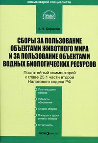 | Полное название книги | А. Н. Борисов Комментарий к главе 25.1 части второй Налогового кодекса Российской Федерации "Сборы за пользование объектами животного мира и за пользование объектами водных биологических ресурсов" |
