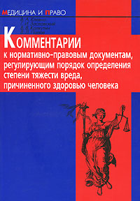 | Полное название книги | В. А. Клевно, Г. И. Заславский, В. В. Колкутин, В. Л. Попов Комментарий к нормативным правовым документам, регулирующим порядок определения степени тяжести вреда, причиненного здоровью человека |
