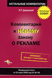 | Полное название книги | В. Р. Дворецкий Комментарий к новому закону о рекламе |