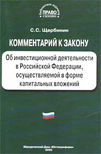 | Полное название книги | С. С. Щербинин Комментарий к Закону об инвестиционной деятельности в Российской Федерации, осуществляемой в форме капитальных вложений (постатейный) |