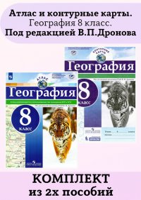 | Полное название книги | В. П. Дронов Комплект Атлас и контурные карты География 8 класс Русское географическое общество |