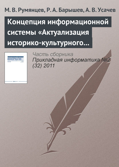 | Полное название книги | Р. А. Барышев, М. В. Румянцев, А. В. Усачев Концепция информационной системы «Актуализация историко-культурного наследия» |