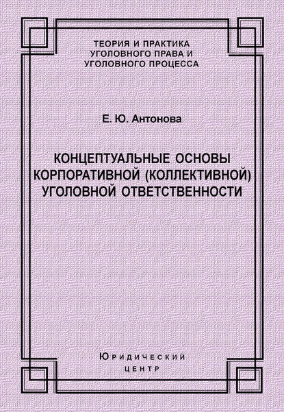 | Полное название книги | Елена Юрьевна Антонова Концептуальные основы корпоративной (коллективной) уголовной ответственности |