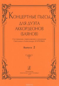 | Полное название книги | сост., пе, Агаповы С., А. Ред. Концертные пьесы для дуэта аккордеонов (баянов). Вып. 2 |