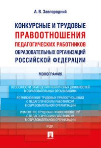| Полное название книги | А. В. Завгородний Конкурсные и трудовые правоотношения педагогических работников образовательных организаций Российской Федерации |