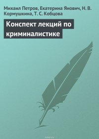 | Полное название книги | Петров Михаил Игоревич, Кормушкина Н. В., Кобцова Тамара Сергеевна, Янович Екатерина Юрьевна Конспект лекций по криминалистике |