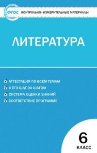 | Полное название книги | Н. В. Егорова Контрольно-измерительные материалы. Литература. 6 класс. ФГОС |