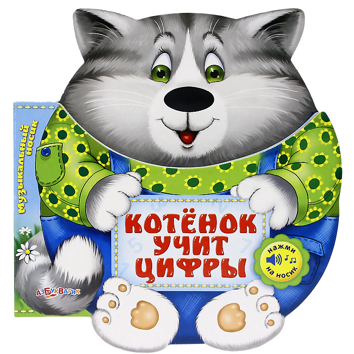 Вашему вниманию предлагается книжка-игрушка с забавными стишками и яркими картинками, которая научит малыша различать цифры. Нажми на носик и слушай песенку. Нажми еще раз - и песенка остановится.