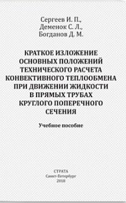 | Полное название книги | С. Л. Деменок, И. П. Сергеев, Д. М. Богданов Краткое изложение основных положений технического расчета конвективного теплообмена при движении жидкости в прямых трубах круглого поперечного сечения. Учебное пособие |