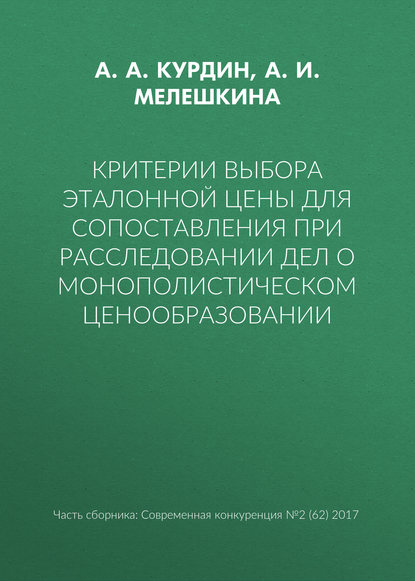 | Полное название книги | Анна Игоревна Мелешкина, Александр Александрович Курдин Критерии выбора эталонной цены для сопоставления при расследовании дел о монополистическом ценообразовании |