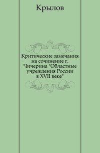 | Полное название книги | Н. И. Крылов Критические замечания на сочинение г.Чичерина "Областные учреждения России в XVII веке" |