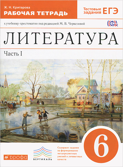 | Полное название книги | Ж. Н. Критарова Литература. 6 класс. Рабочая тетрадь. В 2 частях. Часть 1. Рабочая тетрадь |