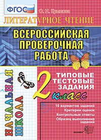 | Полное название книги | О. Н. Крылова Литературное чтение. 2 класс. Всероссийская проверочная работа. Типовые тестовые задания |