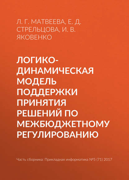 | Полное название книги | Е. Д. Стрельцова, Людмила Григорьевна Матвеева, И. В. Яковенко Логико-динамическая модель поддержки принятия решений по межбюджетному регулированию |