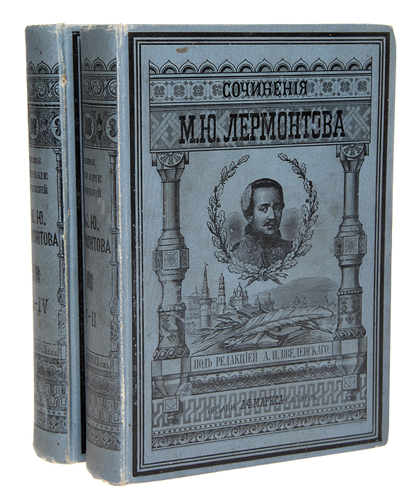 Полное собрание сочинений М. Ю. Лермонтова под редакцией А. Введенского, в четырех томах. В первой книге имеется портрет поэта, гравированный на стали Ф. А. Брокгаузом в Лейпциге, а также факсимиле с автографом.