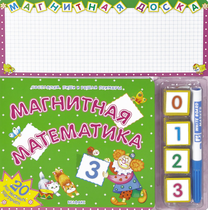 Эта увлекательная книга в игровой форме познакомит вашего ребёнка с цифрами, научит его быстро считать и решать весёлые задачи. Кроме того, с помощью фломастера и магнитных карточек ваш малыш сможет самостоятельно выполнять активные действия: составлять, писать и решать примеры. Это поможет ему закрепить полученные знания.