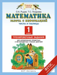 | Полное название книги | Т. С. Позднева, О. А. Рыдзе Математика. 1 класс. Работа с информацией. Числа и таблицы. Тренировочные задания |