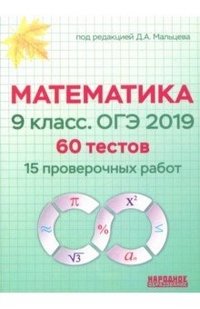 | Полное название книги | Д. А. Мальцев, А. А. Мальцев, Л. И. Мальцева Математика. 9 класс. ОГЭ 2019. 60 тестов. 15 проверочных работ |