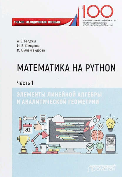 | Полное название книги | Марина Борисовна Хрипунова, Ирина Александровна Александрова, Анна Сергеевна Хрипунова-Балджы Математика на Python. Часть I. Элементы линейной алгебры и аналитической геометрии |