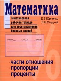 | Полное название книги | Е. В. Юрченко, Л. Б. Слуцкий Математика: Тематическая рабочая тетрадь для восстановления базовых знаний: Части; Отношения; Пропорции и др |