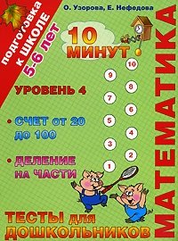 | Полное название книги | О. Узорова, Е. Нефедова Математика. Тесты для дошкольников. Уровень 4. Счет от 20 до 100, деление на части |