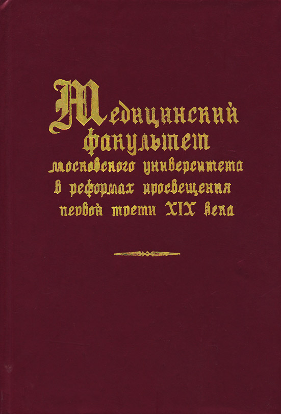 | Полное название книги | А. М. Сточик, С. Н. Затравкин, М. А. Пыльцев Медицинский факультет Московского университета в реформах просвещения первой трети XIX века |