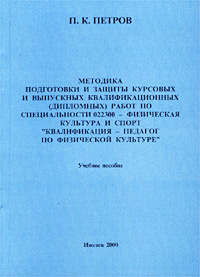 | Полное название книги | П. К. Петров Методика подготовки и защиты курсовых и выпускных квалификационных (дипломных) работ по специальности 022300 - Физическая культура и спорт `Квалификация - педагог по физической культуре` |