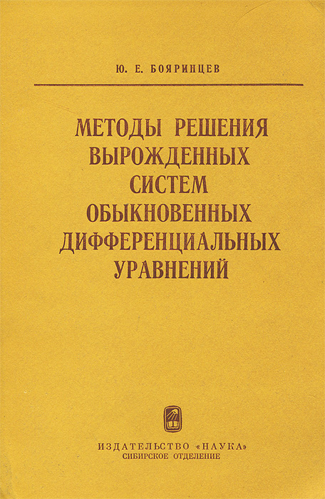 | Полное название книги | Ю. Е. Бояринцев Методы решения вырожденных систем обыкновенных дифференциальных уравнений |