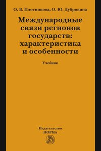 | Полное название книги | О. Ю. Дубровина, О. В. Плотникова Международные связи регионов государств. Характеристика и особенности. Учебник |