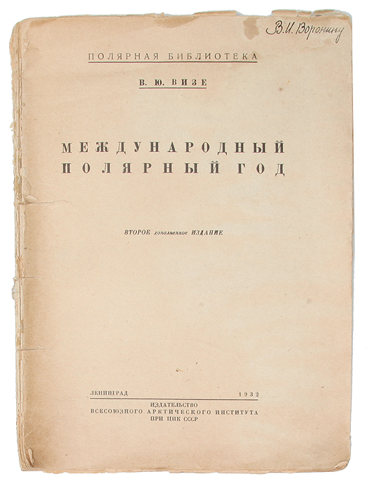| Полное название книги | В. Ю. Визе Международный полярный год |