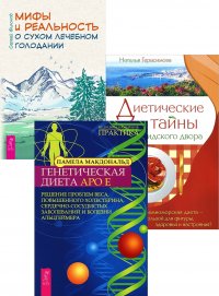 | Полное название книги | Макдональд Памела, Филонов Сергей, Герасимова Наталья Мифы и реальность о сухом лечебном голодании + Генетическая диета + Диетические тайны |