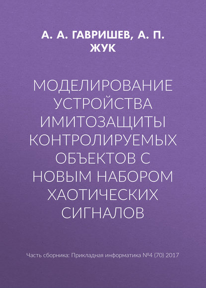 | Полное название книги | А. П. Жук, А. А. Гавришев Моделирование устройства имитозащиты контролируемых объектов с новым набором хаотических сигналов |