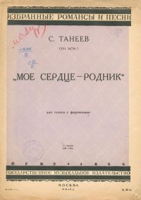 | Полное название книги | С. Танеев "Мое сердце - родник". Для голоса с ф-но |
