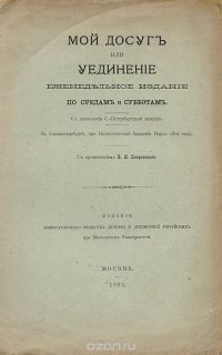 | Полное название книги | Мой досуг, или Уединение. Еженедельное издание по средам и субботам |