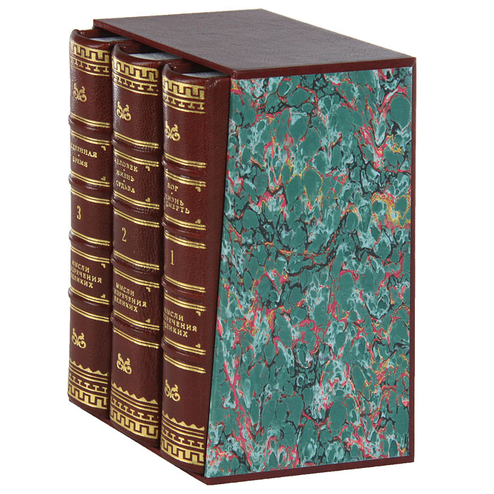Оригинально оформленное подарочное издание из 3 книг в кожаном переплете с шелковыми ляссе. Книги вложены в футляр.