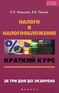 | Полное название книги | Е. Л. Мирзоян, В. В. Лесняк Налоги и налогообложение. Краткий курс. За три дня до экзамена |