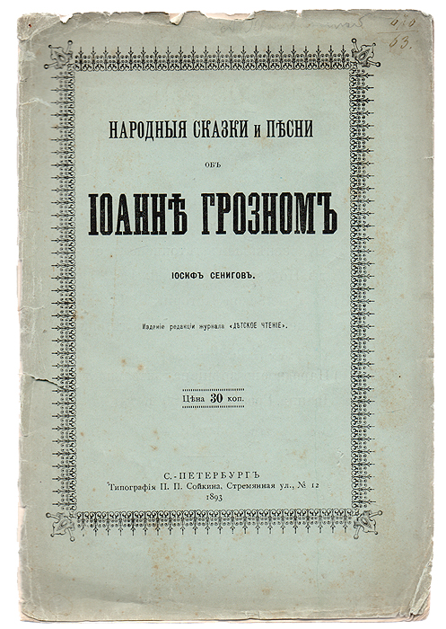 | Полное название книги | Иосиф Сенигов Народные сказки и песни об Иоанне Грозном |