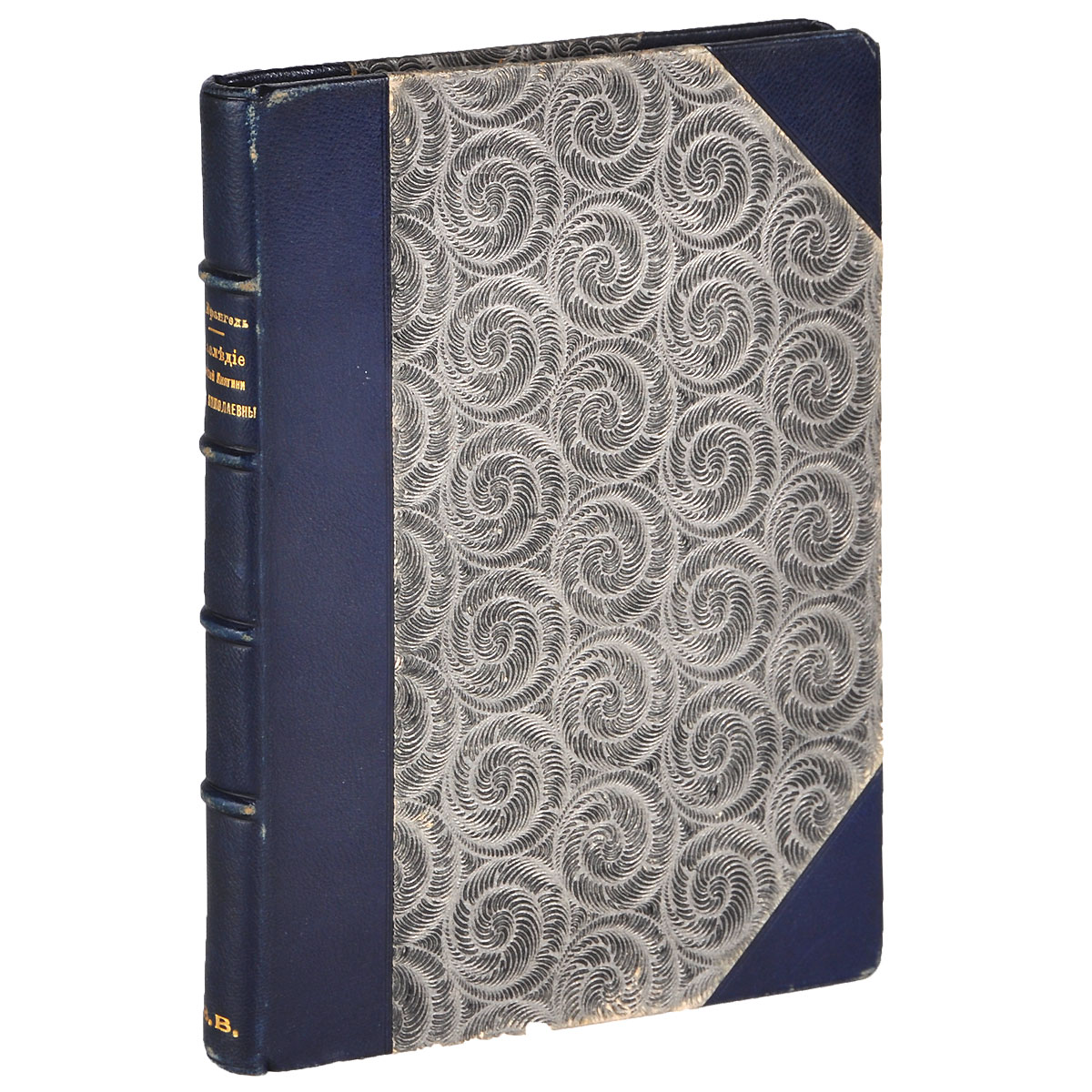 Полукожаный переплет, с золотым тиснением на корешке. Тройной узорный обрез.