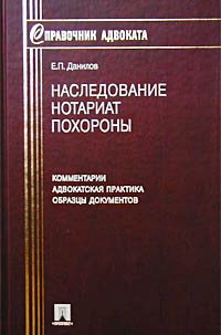 | Полное название книги | Е. П. Данилов Наследование. Нотариат. Похороны. Комментарии. Адвокатская практика. Образцы документов |