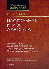 | Полное название книги | Е. П. Данилов Настольная книга адвоката. Комментарии. Судебная практика. Образцы документов. Справочные материалы |