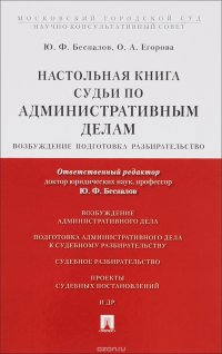 | Полное название книги | Ю. Ф. Беспалов, О. А. Егорова Настольная книга судьи по административным делам. Возбуждение, подготовка, разбирательство. Учебно-практическое пособие |