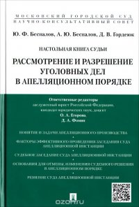 | Полное название книги | Ю. Ф. Беспалов, О. А. Егорова, Д. А. Фомин, Д. В. Гордеюк, А. Ю. Беспалов Настольная книга судьи. Рассмотрение и разрешение уголовных дел в апелляционном порядке. Учебное пособие |