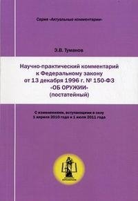 | Полное название книги | Э. В. Туманов Научно-практический комментарий к Федеральному закону от 13 декабря 1996 г. №150-ФЗ "Об оружии" (постатейный) |