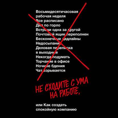 На сайте представлено только описание и выходные данные книги «Не сходите с ума на работе Джейсон Фрайд, Дэвид Хайнемайер Хенссон, Екатерина Геннадьевна Петрова». Сайт не является распространителем книги. Сайт не предоставляет возможности купить, читать онлайн или скачать бесплатно книгу «Не сходите с ума на работе Джейсон Фрайд, Дэвид Хайнемайер Хенссон, Екатерина Геннадьевна Петрова». Сайт предназначен для лиц старше 18 лет. Если вам не исполнилось 18 лет - незамедлительно покиньте сайт. Оставаясь на сайте вы подтвердаете, что вам исполнилось 18 лет.