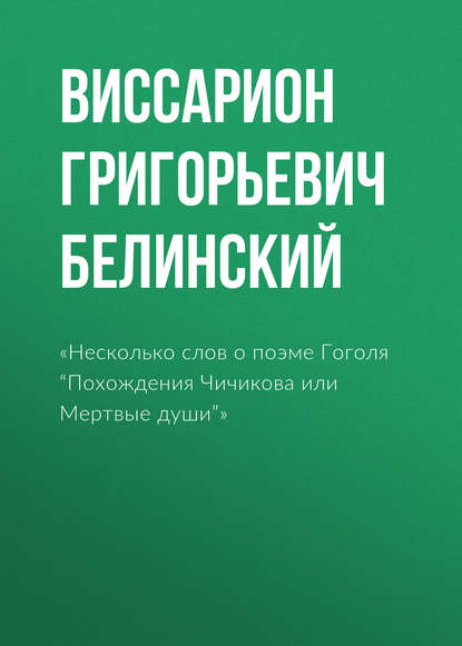 | Полное название книги | Виссарион Григорьевич Белинский, «Несколько слов о поэме Гоголя “Похождения Чичикова или Мертвые души”» |