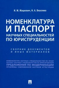 | Полное название книги | Николай Александрович Власенко, Игорь Михайлович Мацкевич Номенклатура и Паспорт научных специальностей по юриспруденции |