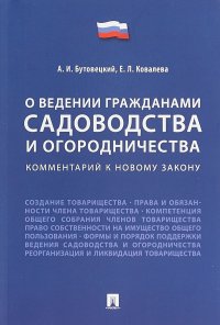 | Полное название книги | Е.Л. Ковалева, А. И. Бутовецкий О ведении гражданами садоводства и огородничества. Комментарий к новому закону |