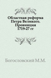 | Полное название книги | М. М. Богословский Областная реформа Петра Великого. Провинция 1719-27 гг |