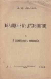 | Полное название книги | Лев Толстой Обращение к духовенству. О религиозном воспитании |